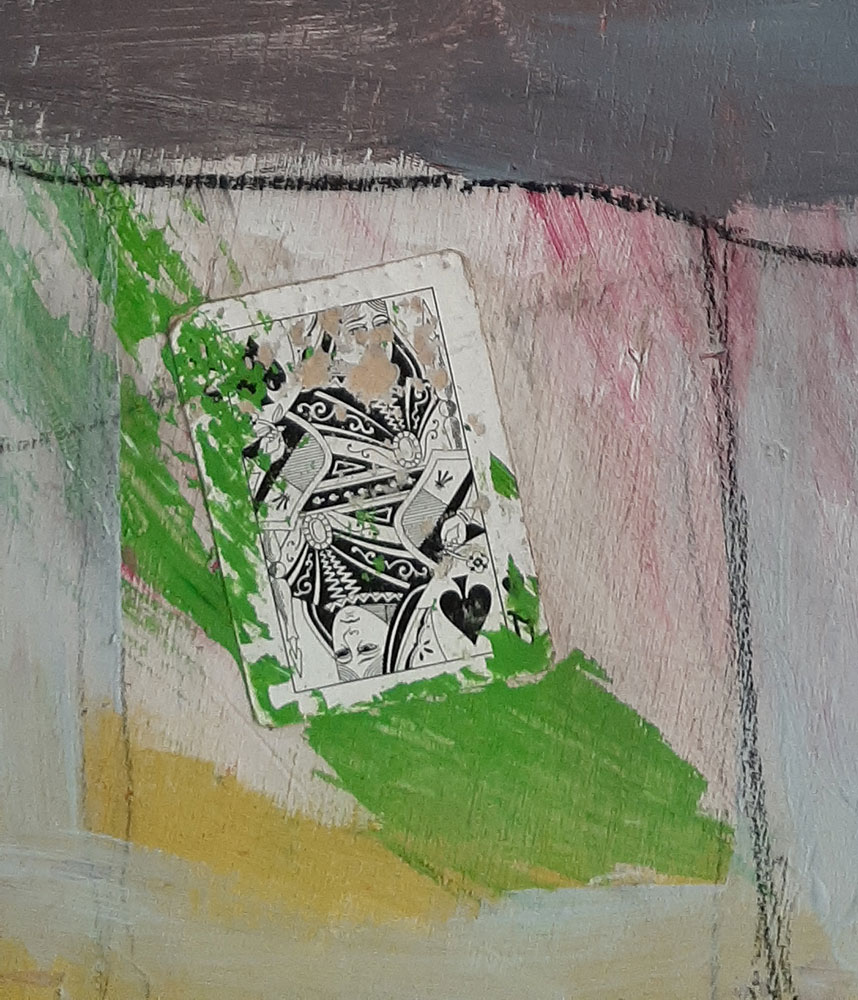 Je me suis éloignée de la plage. Trop de monde et trop de soleil. Le cœur en miettes et le corps en manque de lui, B. J’ai mangé sans joie mon pique-nique sur l’herbe. Cette Dame de pique était plantée là devant moi, elle aussi solitaire sur le gazon.