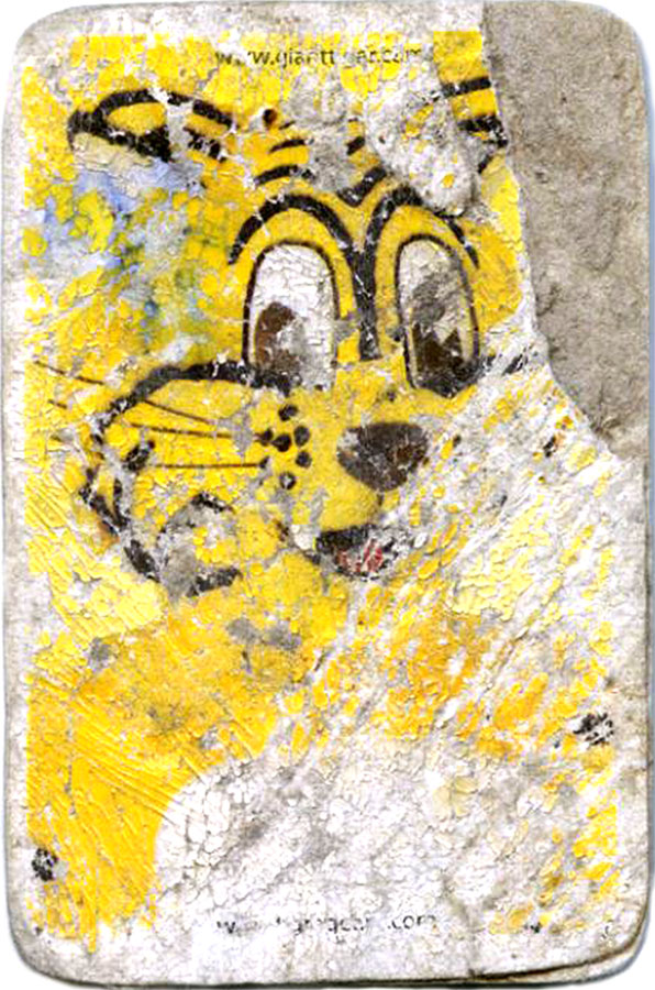 Depuis près de 30 ans, je collectionne des cartes trouvées au hasard. J’en ai récolté plus d’une centaine à ce jour. Je m’intéresse à leurs motifs, aux textures, aux traces laissées par les intempéries, à leur symbolique parfois, et aussi au lieu où je les trouve. Je relève des coïncidences, fais des associations, cherche parfois du sens. Cette collection questionne le rôle du hasard dans nos vies avec un aspect ludique. Elle s’inscrit sur une ligne de temps qui réfère au journal intime et au quotidien.